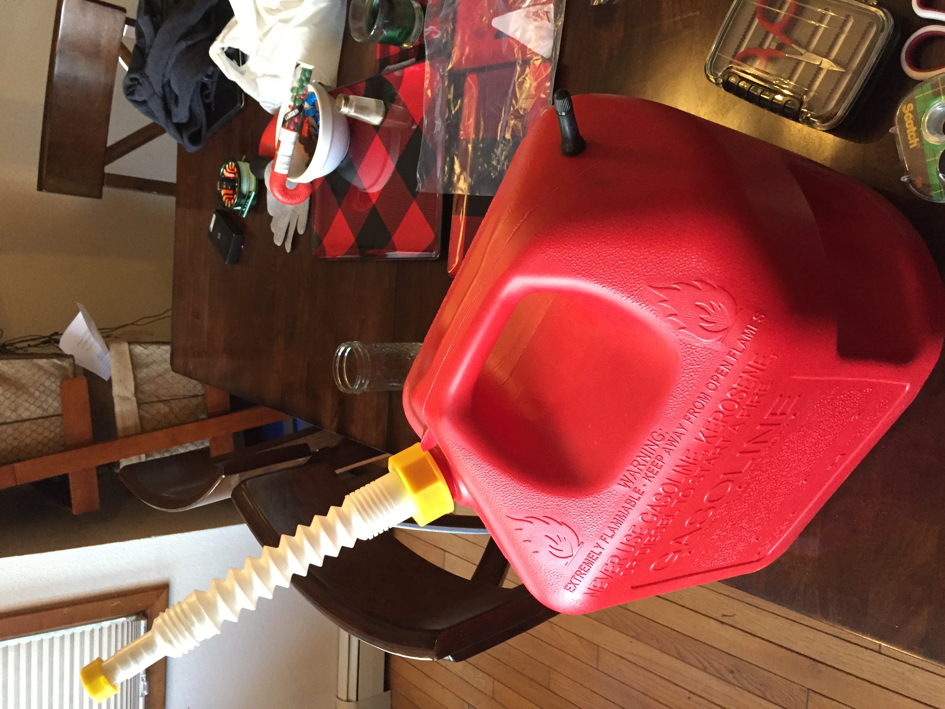 8GCBC wrote:courierguy wrote: Anything except the EPA /OSHA compliant fuel jugs they sell nowadays! In a moment of weakness, needing to carry some diesel home for my tractor (and having forgotten to bring into town one of my ABW gas bags) I bought a 5 gallon yellow diesel specific jug from Lowes. Once home, after I got about 1 gallon of fuel out of it (which took a couple minutes) I was so pissed off I just siphoned the rest out, what a piece of crap, very poorly engineered, if the intent was something to pour fuel out of anyway. I haven't used it since, and every time I look at it I kick myself for buying it. I need to give it away to some sucker. Not only does it pour very slowly and awkwardly, it's center of gravity makes it prone to tip over very easy while transporting.