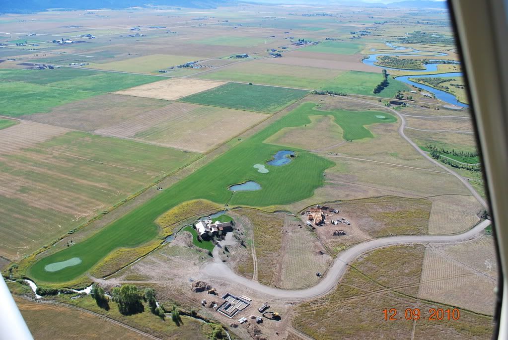 This Star Valley property owner couldn't decide as to whether a golf course or an airstrip would be the way to go, so he did both, note the hangar at the far end and several windsocks.