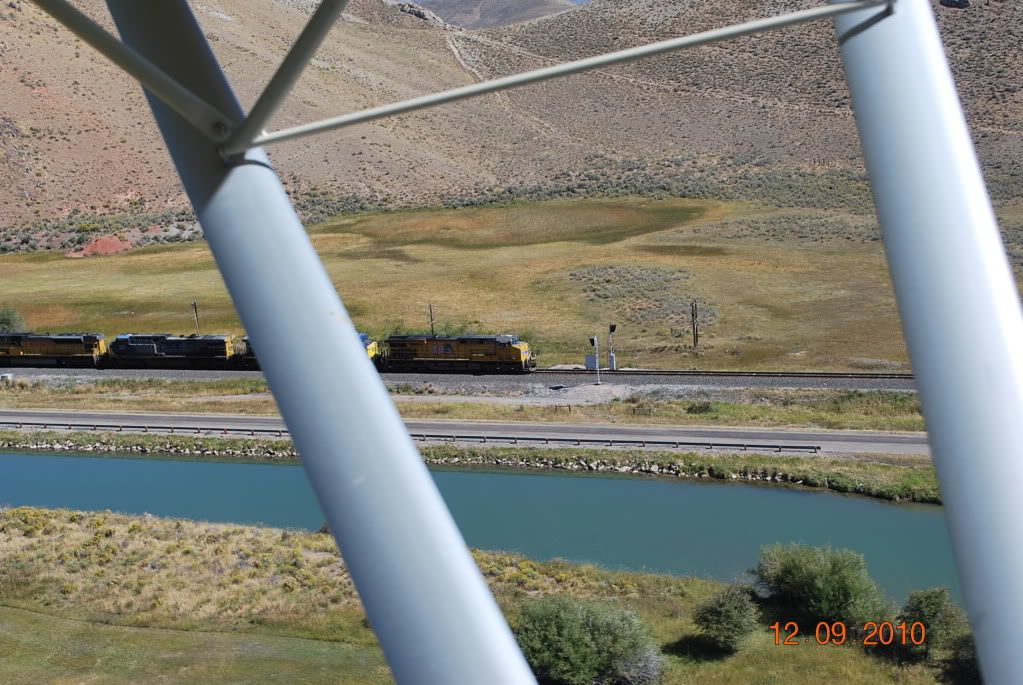 Lastly, a little cruising in a remote part of Wyoming with a freight train. He was real good at holding it steady.