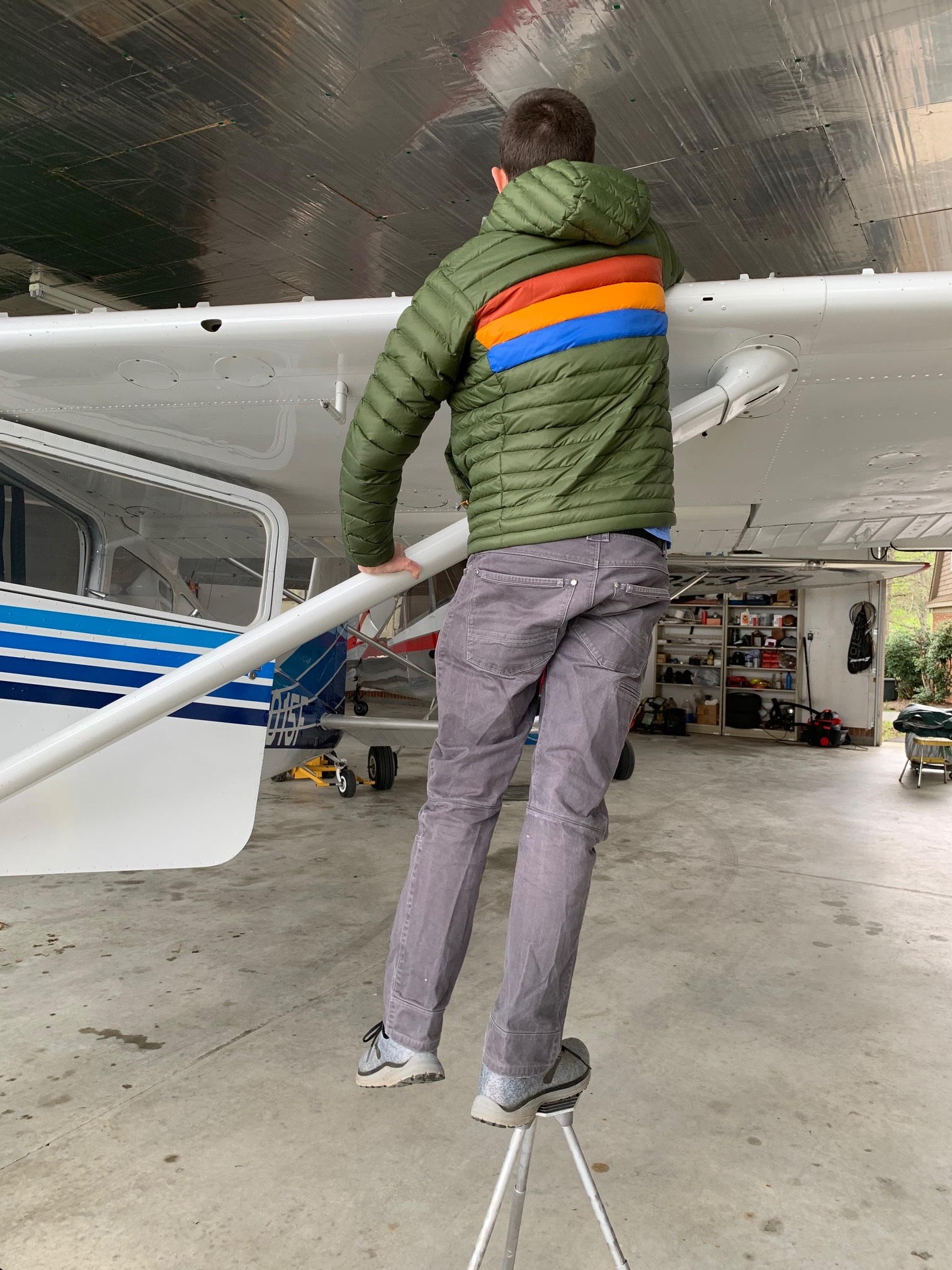 It's tall enough for me to reach the top of the wing on my Tripacer. I can use it to dip the tanks, check caps, and pour gas cans in the tanks. it folds down to about 12 x 20 x 8 inches and fits great in the baggage compartment without taking up too much space. Cost about $30 and you can get it for less with a 20% off coupon that Harbor freight send in the mail every month.