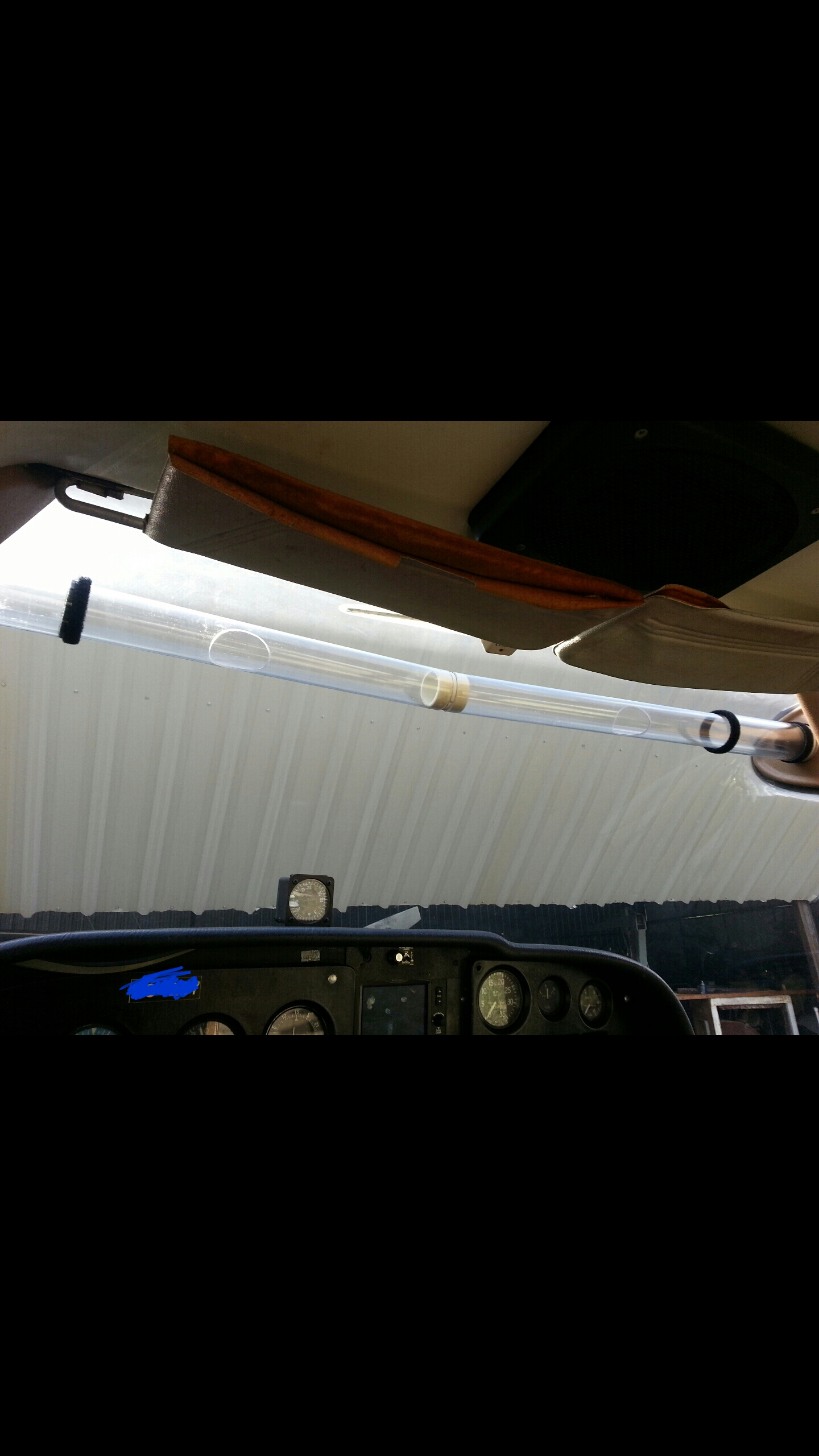 While it is not as pretty as an installation, it's not $1400, and functional. And you can move it from plane to plane in minutes. In the photo the black velcro is the sleeve on each side. This was my prototype. In later units I used white velcro, and since the tube is clear it does not obstruct your vision. Anyway, that's how I handle the heat