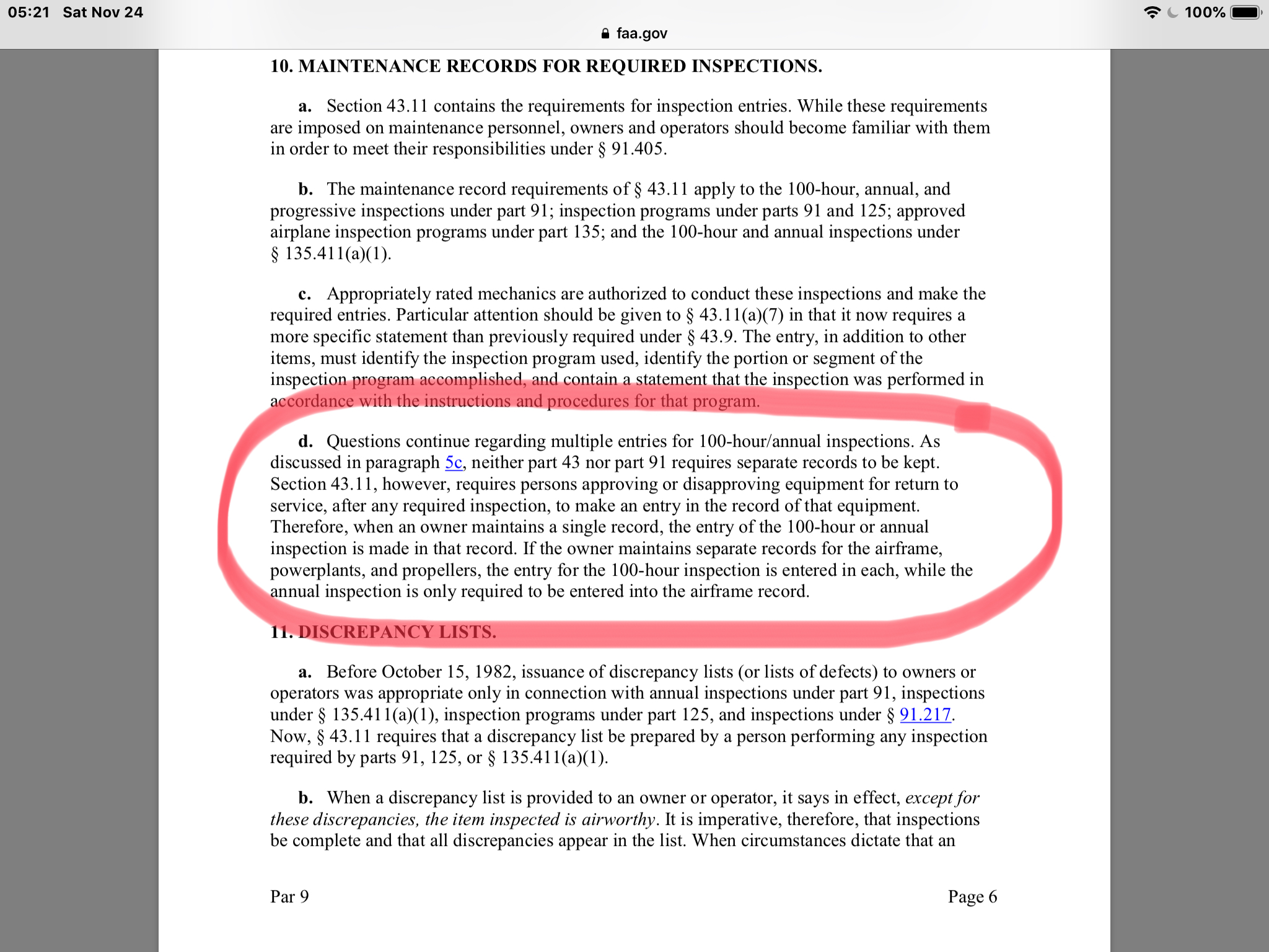 Like I said, several different IA's have endorsed my engine & prop logs for an "annual inspection".