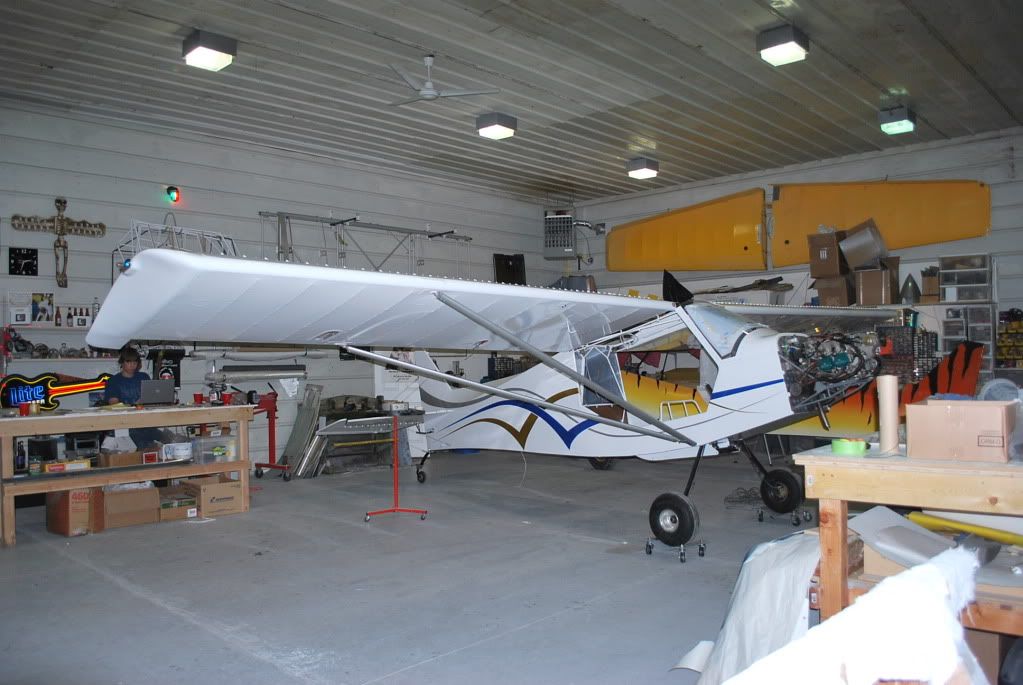 Once arriving at Blackfoot, I checked in with S7-S guru Joel Milloway at his skunkworks, he is the go to man for help in building, and many different mods he has came up with for the S-7, like extended range wing tanks, his own design wing tips, and many more. Recently moved to my area it is always fun to see whatsup in his shop. Here is his own personal bird under construction. With his wing tanks and header tank he has almost 30 gallons of usable fuel, and remember the 912S uses around 4 GPH!