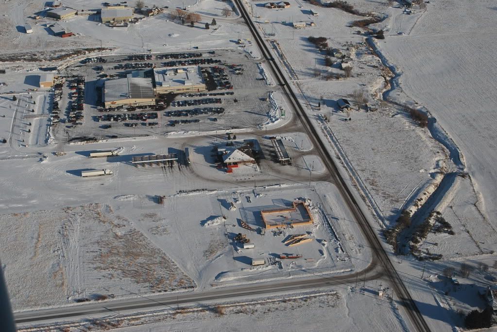 After loading the bundle of shakes, I flew a few miles away to my next week crane job, a grocery story next to a casino on the local res. I'll give a print of this shot to the contractor, plus I have a heads up when I pull up to the jobsite, I'll already know where I need to setup the crane, it's a handy way to do the crane business and suck up to the people writing the check.