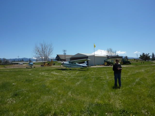 This am got going about 8 and got my e_Apis stuff filed and then we took off for Penticton, BC where we cleared customs and fueled. A mere $1.58 per liter which is about $5.98 per gal. Good to be home :( From there it was dodge some T-storms and then landed at my neighbor's grass strip where I had the worst landing of my career. :oops: