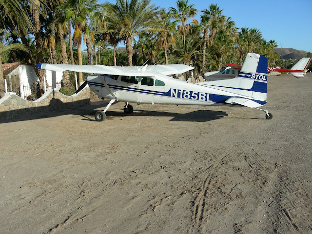 Long day today made even longer by headwinds all the way. Left Mulege and slogged our way to Calexico where I got another 18 gusting 24 kt 90 degree crosswind! Fuel was $3.26 gal in Loreto and $4.80 gal in Calexico. Had lunch, yes Mexican food, at Rosa's, excellent. Left for Coalinga, over the Salton Sea, east of Big Bear Lake and past Palmdale, Tehacapi, to Harris Ranch. Head winds continued and had 20 kts but right down the runway.