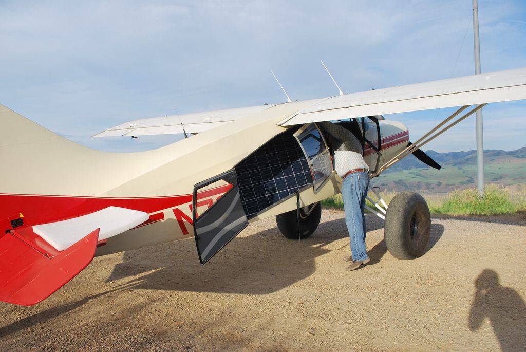 In the plane, just. These type panels produces 255 watts at a little over 30 volts, and are usually used in series, wire up to a dozen end to end (so to speak) and you will get knocked on your ass if careless with the +- leads, even in the shade. Guess how I know this?