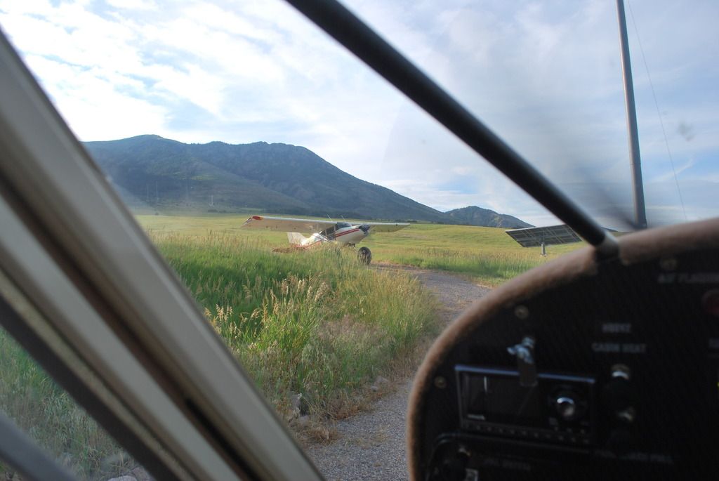 Once we both took off and were headed south, I flew slightly faster then usual, which was plenty fast for his slow speed, he wasn't hanging on the prop or using flaps or anything. So there we were, flying along fat and happy, and enjoying that smug feeling of having put our airplanes to a practical use, when he had to go and ruin it. He pointed out that we had gotten distracted by loading the PV panel, and had left the pump itself in the shop, about 25 miles behind us