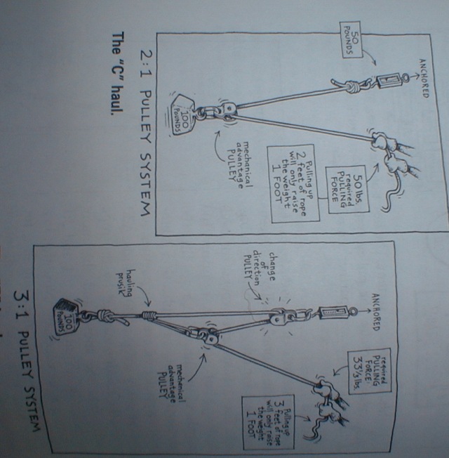 whee wrote:What book are those diagrams from? They look like systems I was taught to use in a swift-water rescue course I took once. I drug my VW bus across a parking lot with a "pig rig" to demonstrate that one person could do it. They are kind of a pain to use though.