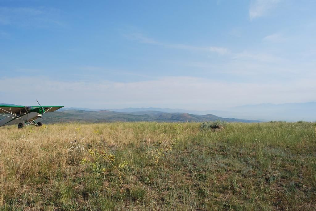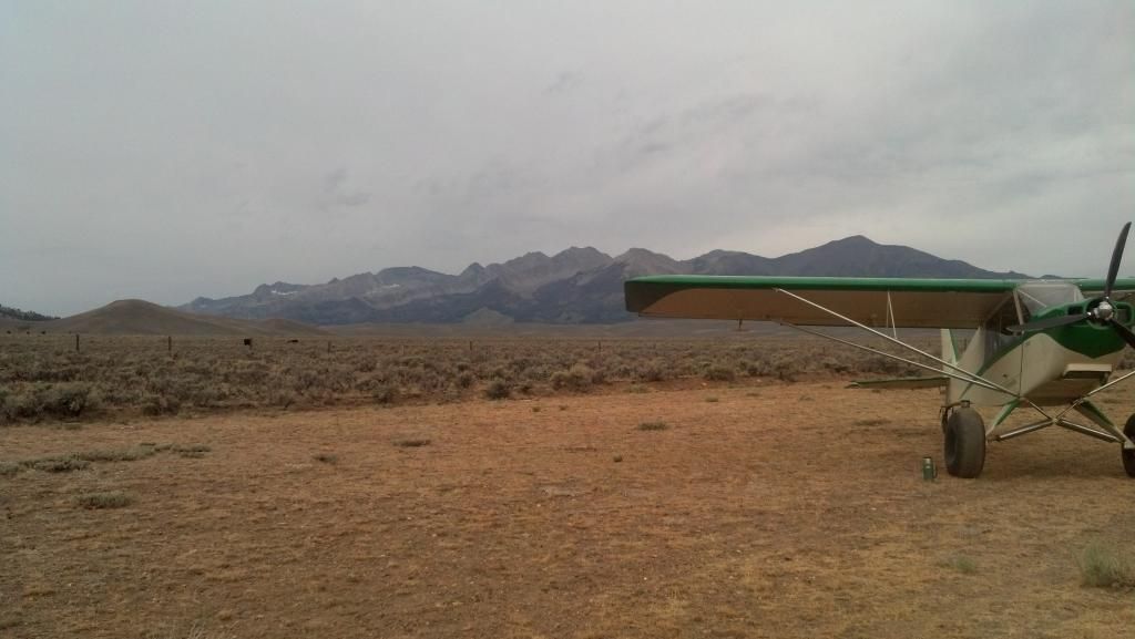 An hour away, to Copper Basin, west of Mackay, to what I think is the highest strip in Idaho, at 7920'. Always pretty secluded, this time was no different. Kind of a hazy looking sky but dead calm and smooth air. The pass coming in from the east is 9K, just real high terrain all around, for sure early in the morning kind of place, I was outa there, after I ran out of coffee, by 7:30. I hit it at least once a year, and have yet to see another plane there. Lot's of old mines (real spooky ones, as in you very easily fall into some of them, no warning signs either, this ain't no theme park