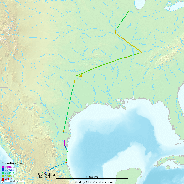 Flyhound wrote:Hey RW2 - Rich, your path looks like a hound dog zig zagging around a scent. Did you have ulterior motives for the various points, or did weather push you around? Is the weather a tad bit nicer in Mexico than it was in the Midwest?