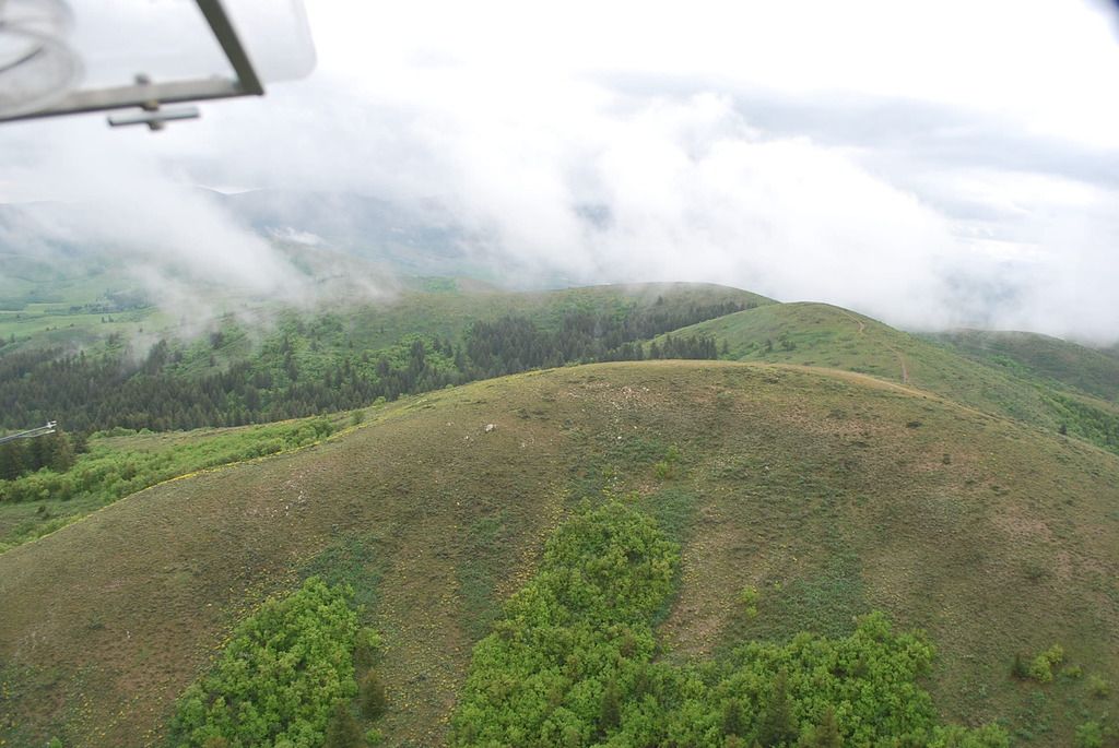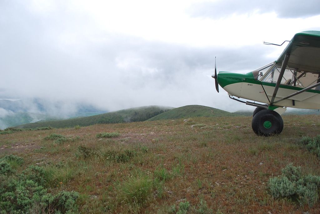 I had a great aborted breakfast flight to Afton :?: Severe clear my side of the ridge, once up and over I could then see the broken fog bank to the east. I thought, what the hell, and kept going until it got almost solid, then played around diving down through a hole and continued underneath it. There was a bit of fresh snow, with the bright green new spring growth underneath, that combined with the weird lighting underneath the fog bank, made for a real unusual view, the acoustic blues the Sirius sat radio was playing was perfect also. I worked it up the fog shrouded canyons as far as I could, always leaving a clear hole behind me, but the fog won out and I eventually turned around, the flight a total failure, and no fun at all. :shock: Somehow 2.3 hrs slipped by nonetheless, and once again I found something new in this area I've been flying for over 30 years now, a nice little lake on top of a little ridge, don't know how I missed it before. Best of all the wind really came up about an hour after I made it home and put the plane away, I love it when that happens!