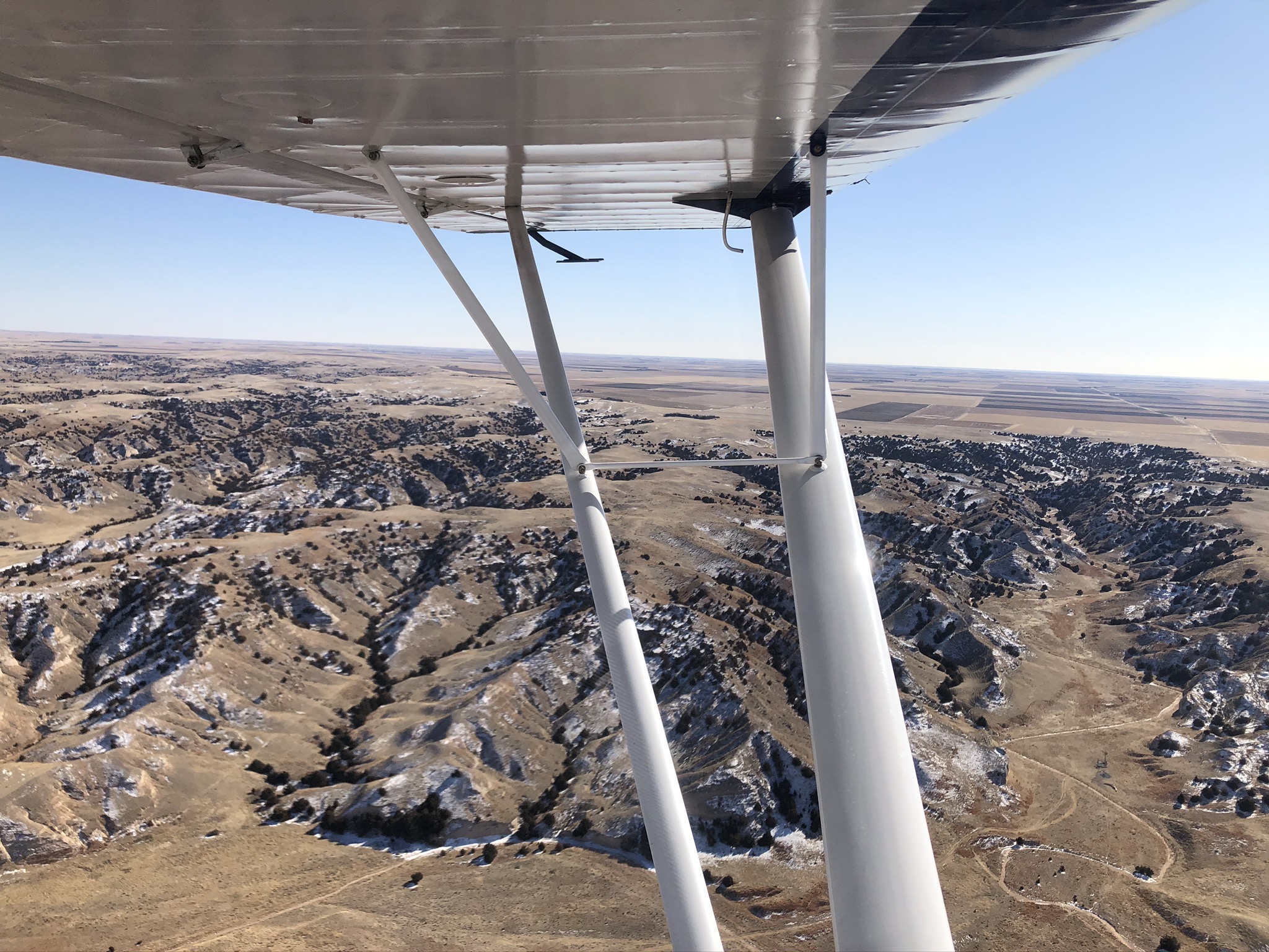I dropped down to 11,500 out over the plains, but it was still a little bumpy, so I dropped down to 9,500 where it was silky smooth all the way to nearly South Dakota. I was seeing ground speeds ranging from mid 130's to high 150's the whole way. I got gas in Oneill Nebraska where it was gusting to 20 but straight down the runway. KSTP was reporting gusting winds well beyond my crosswind ability even on the crosswind runway. At one point I think it was 50 degrees off the runway with gusts into the high 20's, so I was in no hurry to get moving and took a fairly long break. The Taf was saying it was supposed to be 8kts at 220 at 4:00, so I left KONL about 1:15. On that leg I went to 7500 where I found perfectly smooth air and even higher ground speeds, I think I averaged mid 150's for about 2 hours, at one point seeing the over the ground speed in level flight at 172, with lots of time in the mid 160's.