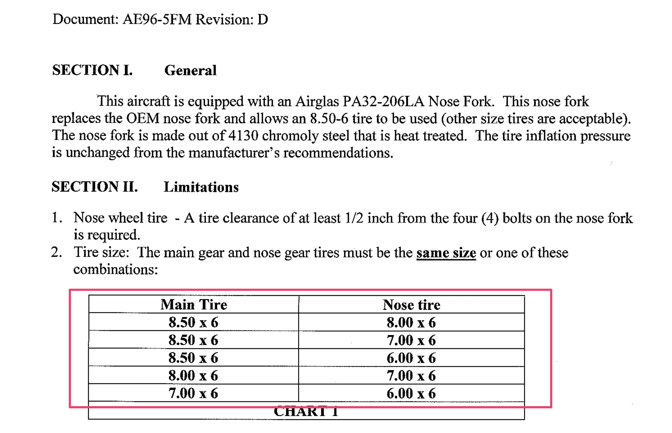 The Supplement Flight Manual that accompanies the Airglas SA02069AK STC was revised on Feb, 9 2015 to include these tire combinations: