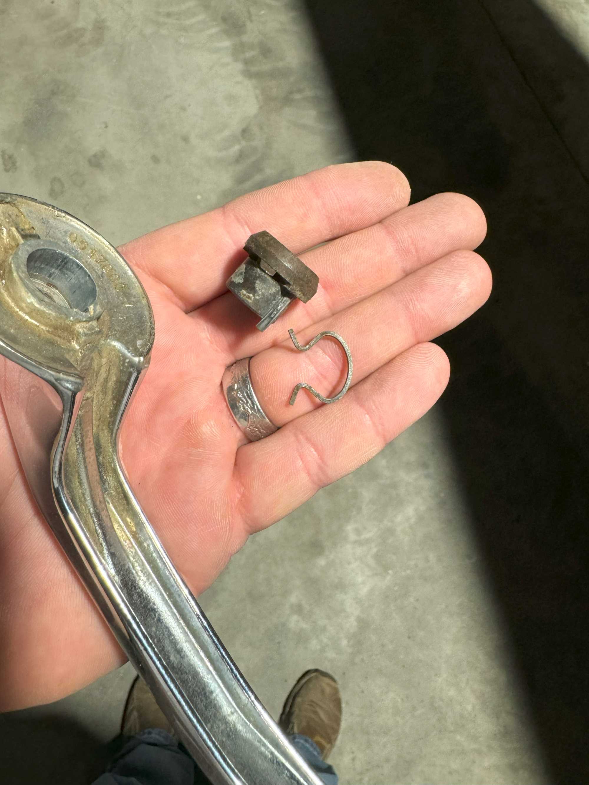I'll check tomorrow, lighting wasn't so great in the hangar at the time. I think it's probably sheared off because there was definitely no circlip, but I'll double check tomorrow and report back.