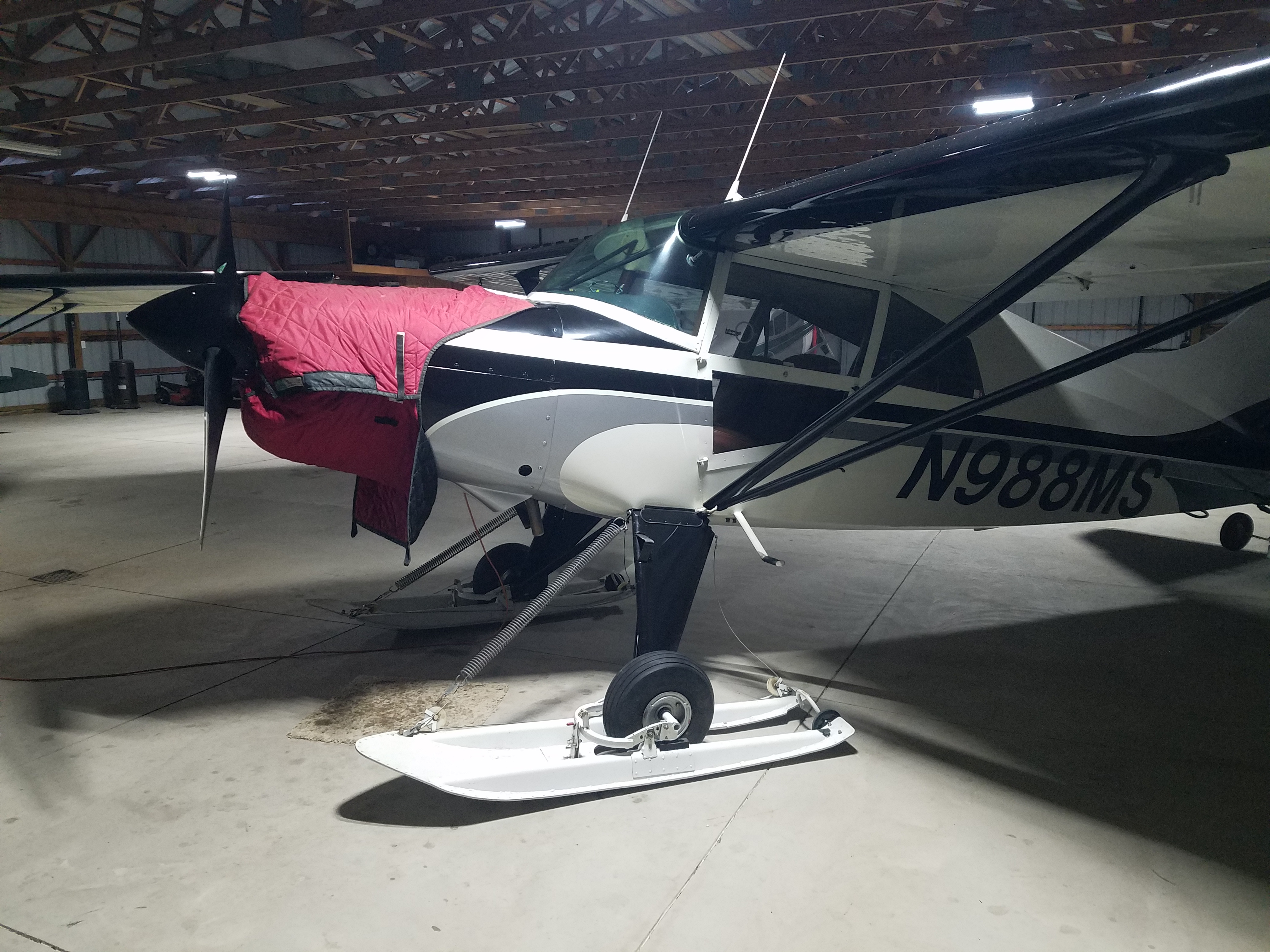 I also found a set of used AeroSki R2800's rigged for a maule so I drove to Wisconsin to get those a while back. I made the deal with a widow with minimal knowledge or pictures or anything, but a heart of gold. Thought I was just buying the skis and was happy with the price, but I got there and it included a set of landing gear, wheels/brakes/tires, tail ski, and even some wing covers.... BINGO. Will be a long road to getting them rigged. There's not a bolt-on solution for extended gear so I can rig that up myself or I could use the stock length gear they came with, but I would need to purchase a set of stock length oleos. Not sure what I'll do yet, I'm not in a rush.