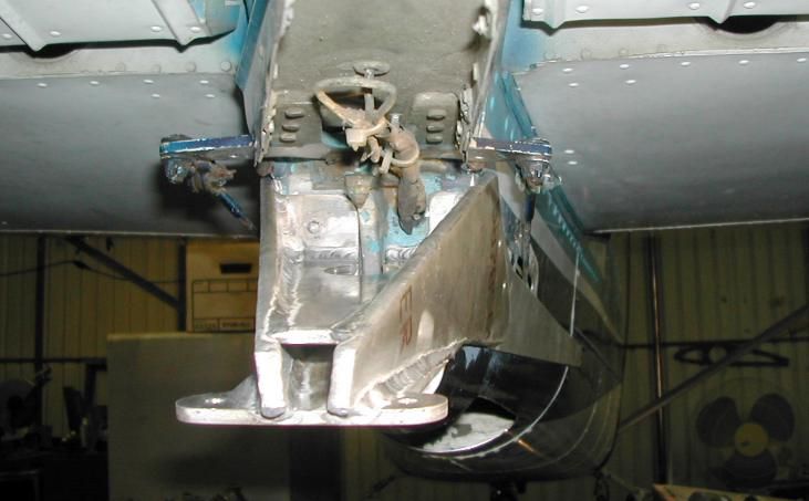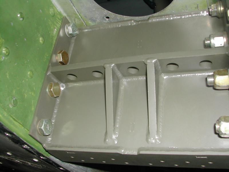 These photos show the brand new prototype welded aluminum fuselage reinforcement doubler/tripler assembly and integral tailwheel spring mount bracket, just completed today. This will replace the old 170/L-19 "alligator bracket", and/or the rectangular strap doubler and riveted (Cessna part) mounting deck of the later Fravel (and Bolen) conversions. I'm sure you will agree this unitized and thickened assembly is stronger, tougher, and even prettier. After two re-designs and making it out of two thicknesses of metal, this complex part weighed in at only 2 lb. 8 oz., while still having over 1/4 inch of wall thickness at the locations of maximum shear and fastener load!