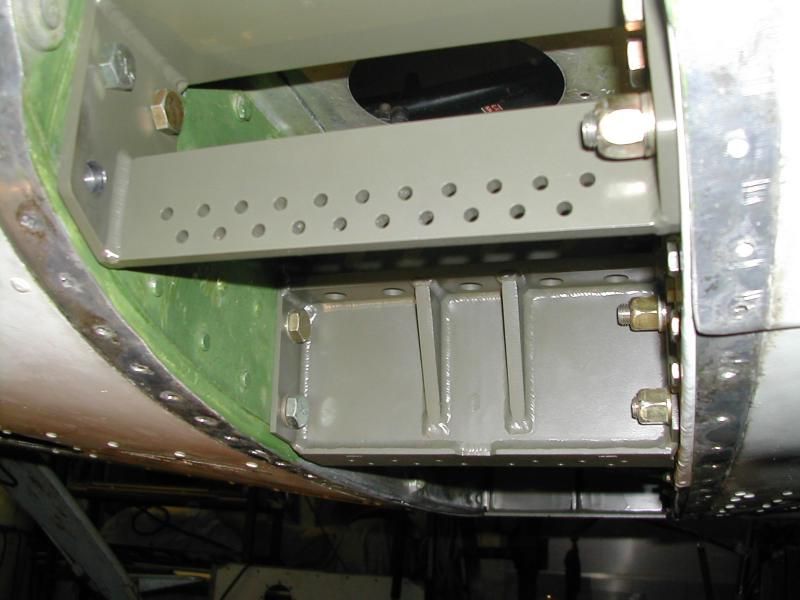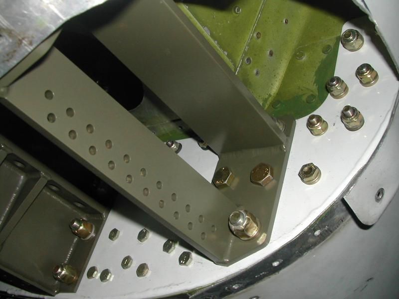 Also shown are the inboard and outboard main landing gear brackets installed on the test aircraft, as well as the integral bulkhead reinforcement and structural skin flange. Note that I have left room on the inboard bracket shear wall for the owner to install the PPONK reinforcement block at their discretion.