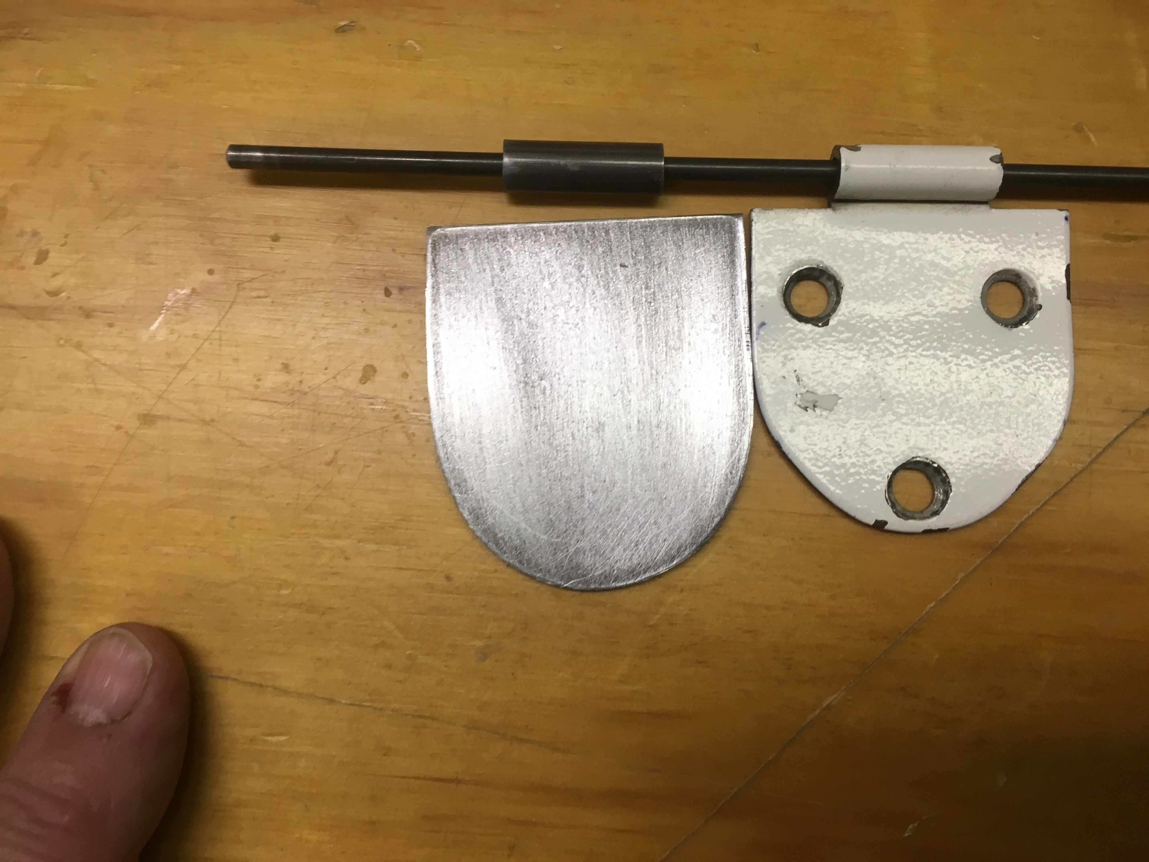 I guess I was hoping for someone’s photo. I’m thinking if I have the .040 doubler on the outside that would be sufficient for attaching the hinge since I have the extra .025 piece between the skin and the flange. Once I get whatever put together the last thing will be to determine what my “pin tube” offset needs to be before I weld the pin to the hinge. Attached pic of new hinge and “pin tube” waiting to be welded in the correct position relative to the forward hinge.