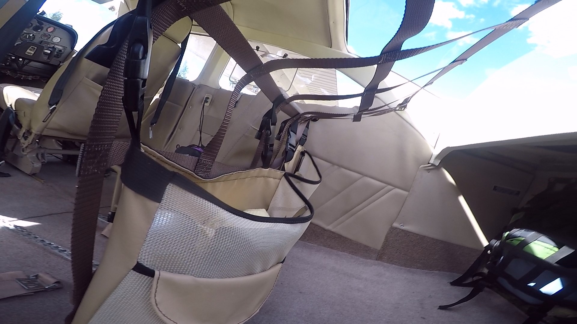 The 28” x 32.5 Safari net did the trick in my 182. Angled downward toward the front, it holds all I can put in the 60 + 20 lb. limited rear section. Right now this is mostly water ballast. Additionally it will also handle my tie-down bag which weighs 20 lbs. This is still retained by the net at its front, just opposite the right side of the baggage door. So, practically I can secure 100 lbs. with this everyday net.
