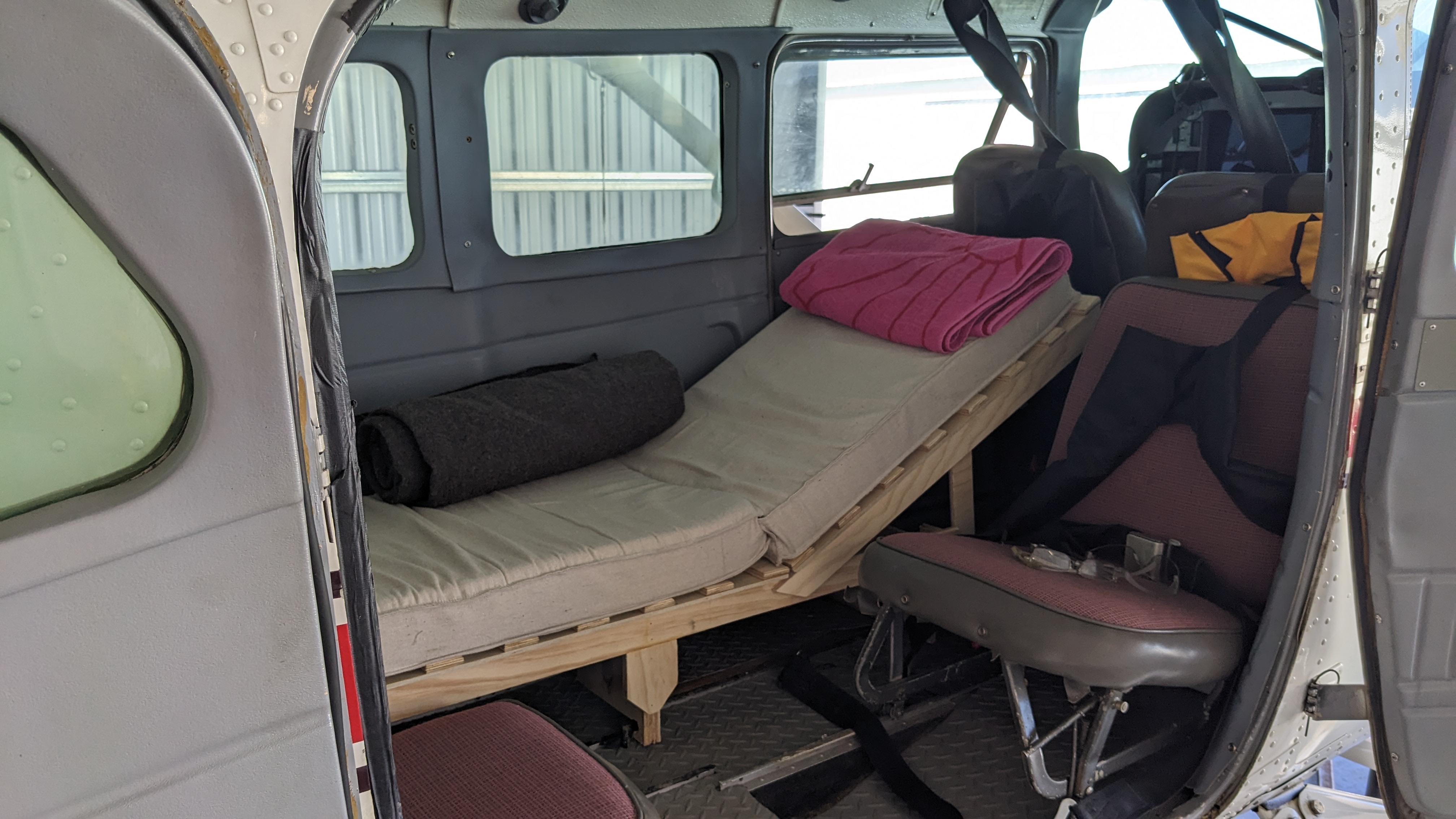 https://photos.app.goo.gl/8FWqZNmv9ZTmSZA57Sleeping on the floors of aircraft over the years sucked. The Cot in the 206 was comfortable but required unloading and rearranging everything at night. A cot takes up a lot of space vs a custom dedicated system.