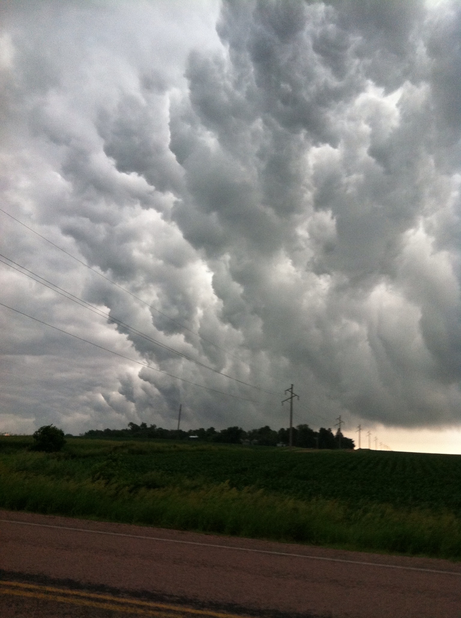 Living out on the plains of South Dakota you see some tremendous thunderstorms move through. Here is a photo I took about two weeks ago as I was leaving home to go to work. this is the back side of a squall line that stretched as far as I could see North and South. Where you can see the brighter sky on the right of the picture is the front of the line where the sky ahead was mostly clear.