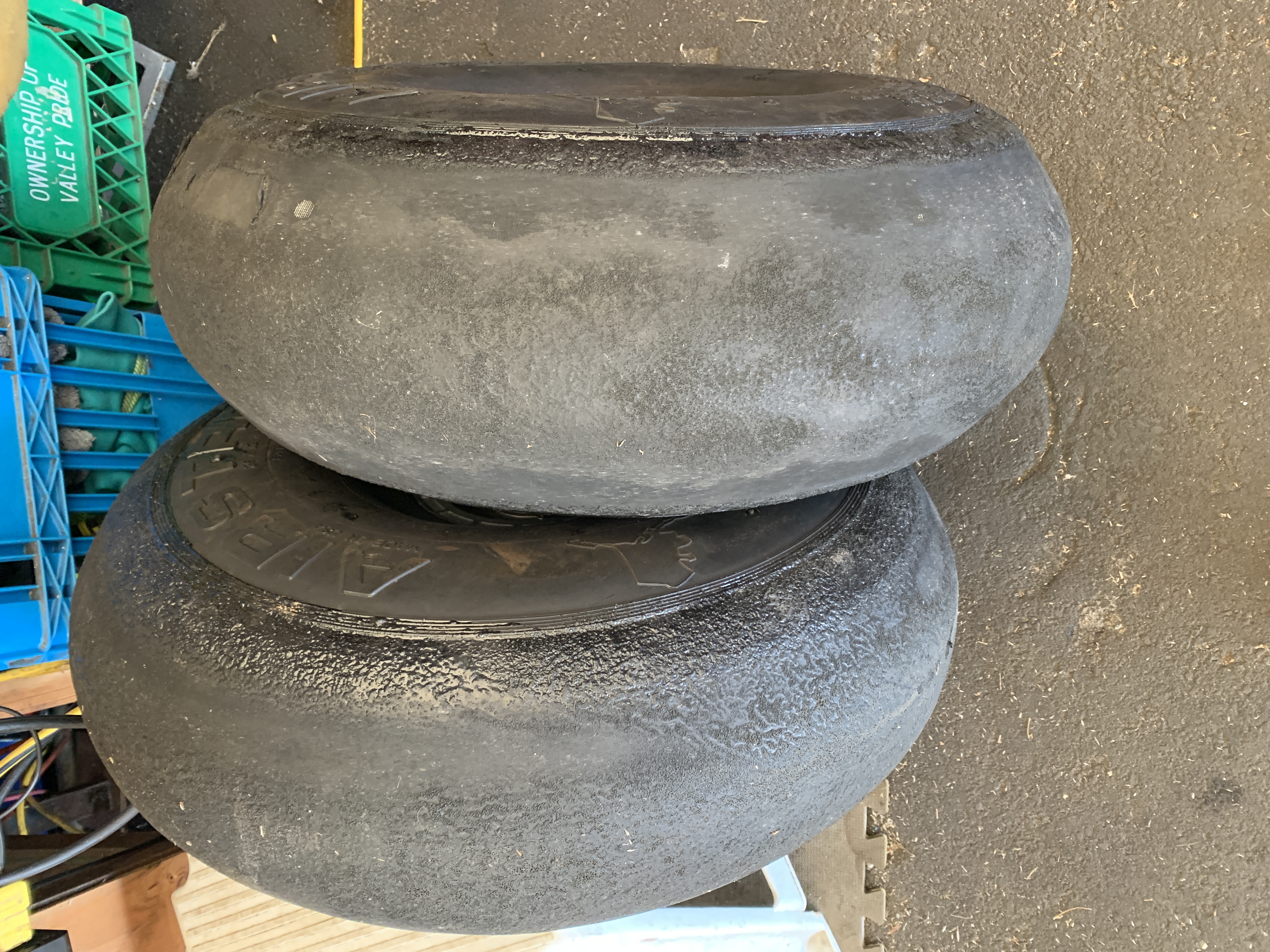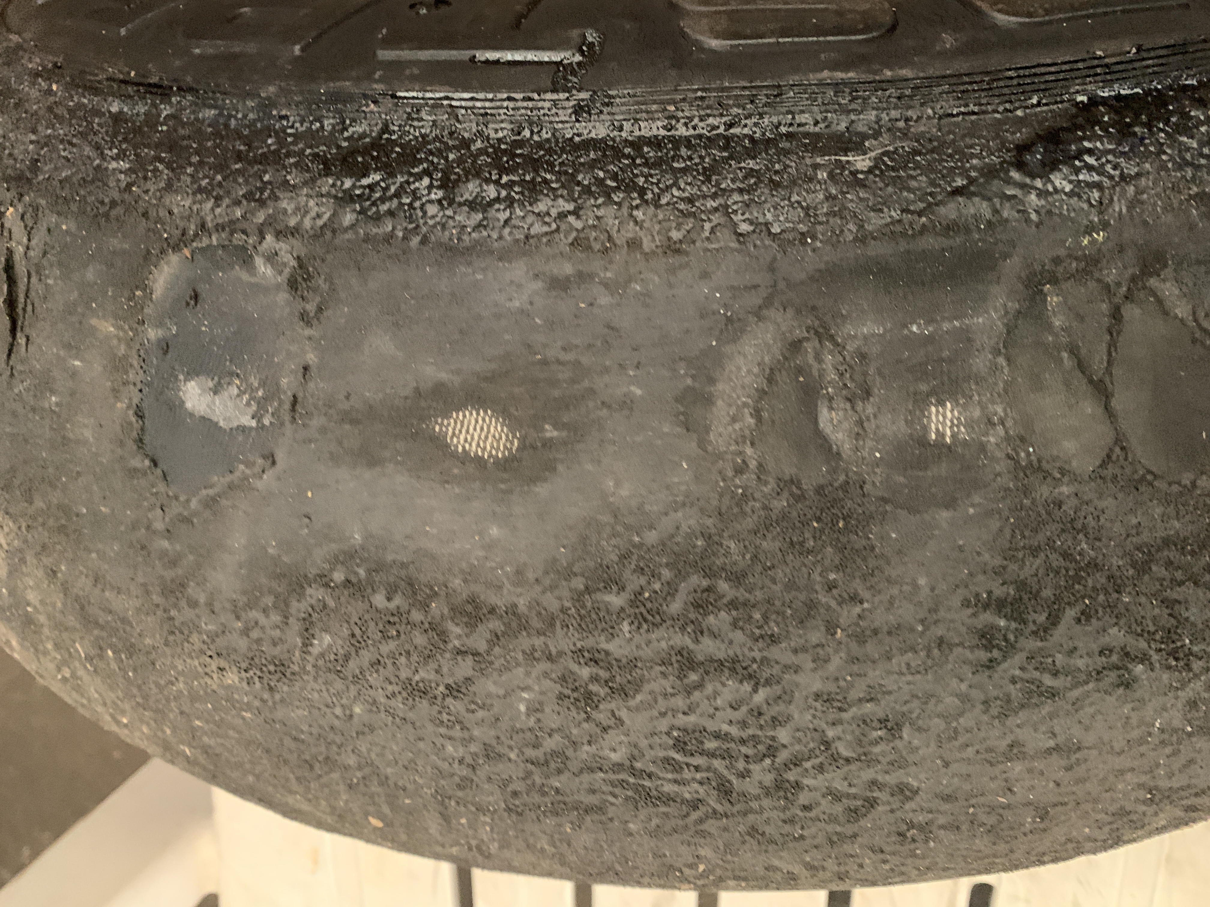Sucks to operate from a paved airport, even often switching to mounted 8:50 when the fat stuff wasn't required. 7 years, and got the quarter-sized tread patches showing through. Herculiner last few years didn't save them. I flipped them side to side but never tried putting the valve stem on the inside.