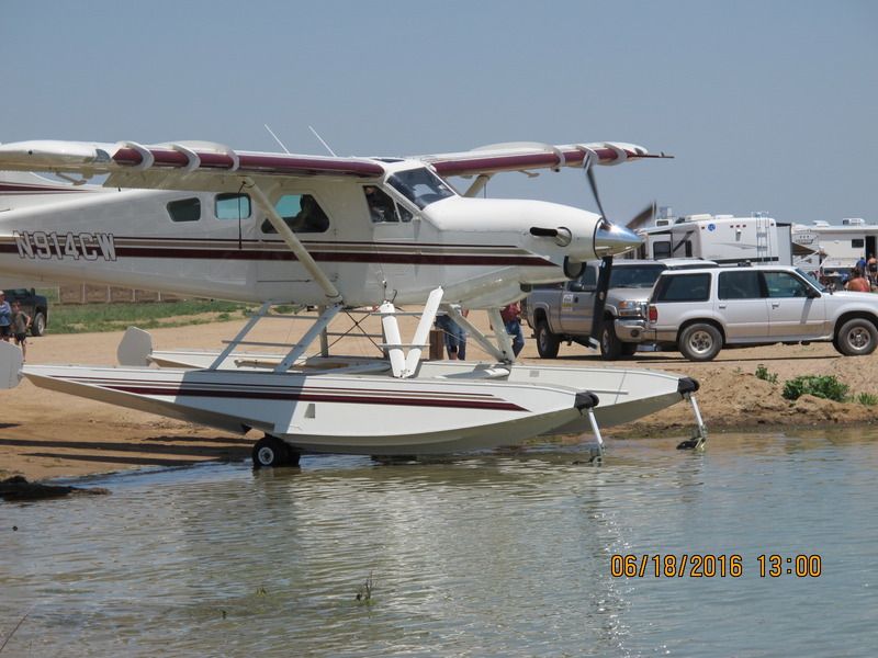 The only glitch that happened was the turbine Beaver, which got stuck in the soft sand at the side of the ramp while going down, which was quickly handled by a raunchy old Chevy pickup which gently pulled it back up. Then apparently in the haste to get back down the ramp more centered, he forgot to pull up his water rudders, and when the airplane leveled into the water, one of the water rudders incurred some minor damage.