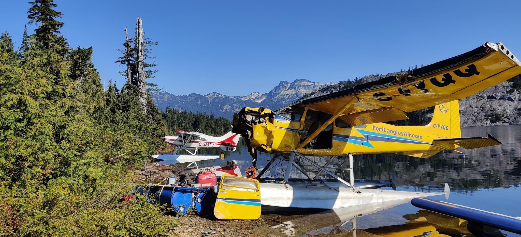 Yep. That's Thomas Lake, probably yesterday. Fort Langley's 180 that's been on the bottom since last summer's heat wave (so about 15 months). Nice plane with the Norland engine mod. The helicopter flew it right past my farm yesterday afternoon. Apparently Don Bradshaw owns it now so it'll be at Pitt.