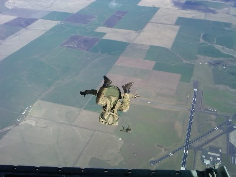 TCJ- Parachute, no. Full on body harness, absolutely. We have a very meticulous process whereby all fastening points are checked then double checked in addition to the length of slack in the securing strap. All of that prior to opening the door, and then all checked again before proceeding aft of the cargo ramp hinge into the "zone of exclusion" which no one enters unless they are properly secured, briefed, and checked out. In the above picture, I was at the fullest extent of the securing strap so as not to become a stain on the floor of the canyon.