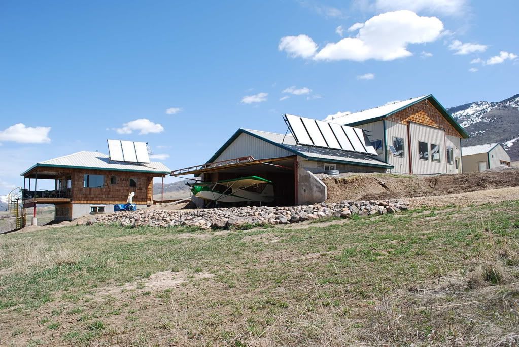 My earlier post on this subject is how I'm set up now that my house is built, I stumbled upon these two pictures showing how it was earlier! Three years ago I moved onto 40 acres of bare ground in the middle of building my S-7S, and building my shop with attached hanger was of course the first order of business. The first winter I lived in a 30 year old piece of sh*t travel trailer,coming up on the second brutal winter (and there's a reason a ski area is right behind me, you can see it in my avatar) since the hanger was completed I figured screw it, I'm moving in. The plane was still under construction in the shop upstairs, so after some carefull measuring I framed up a very temporary "apartment" around the space required for the yet to be completed plane. Moving into the hanger, with its radiant floor heat and solid concrete and super insulated walls (with a full bathroom inc laundry upstairs in the shop) was heaven after the tin box with wheels. Though "rather cramped" it did the job for that winter, the next summer I got busy on the house AND finished the plane (and worked full time at my usual crane business) so for a few months there I was living right next to the plane.....now that I'm all set up and everything is built I can laugh about it, but hey you do what you have to be able to enjoy the flying lifestyle, its always worked for me!