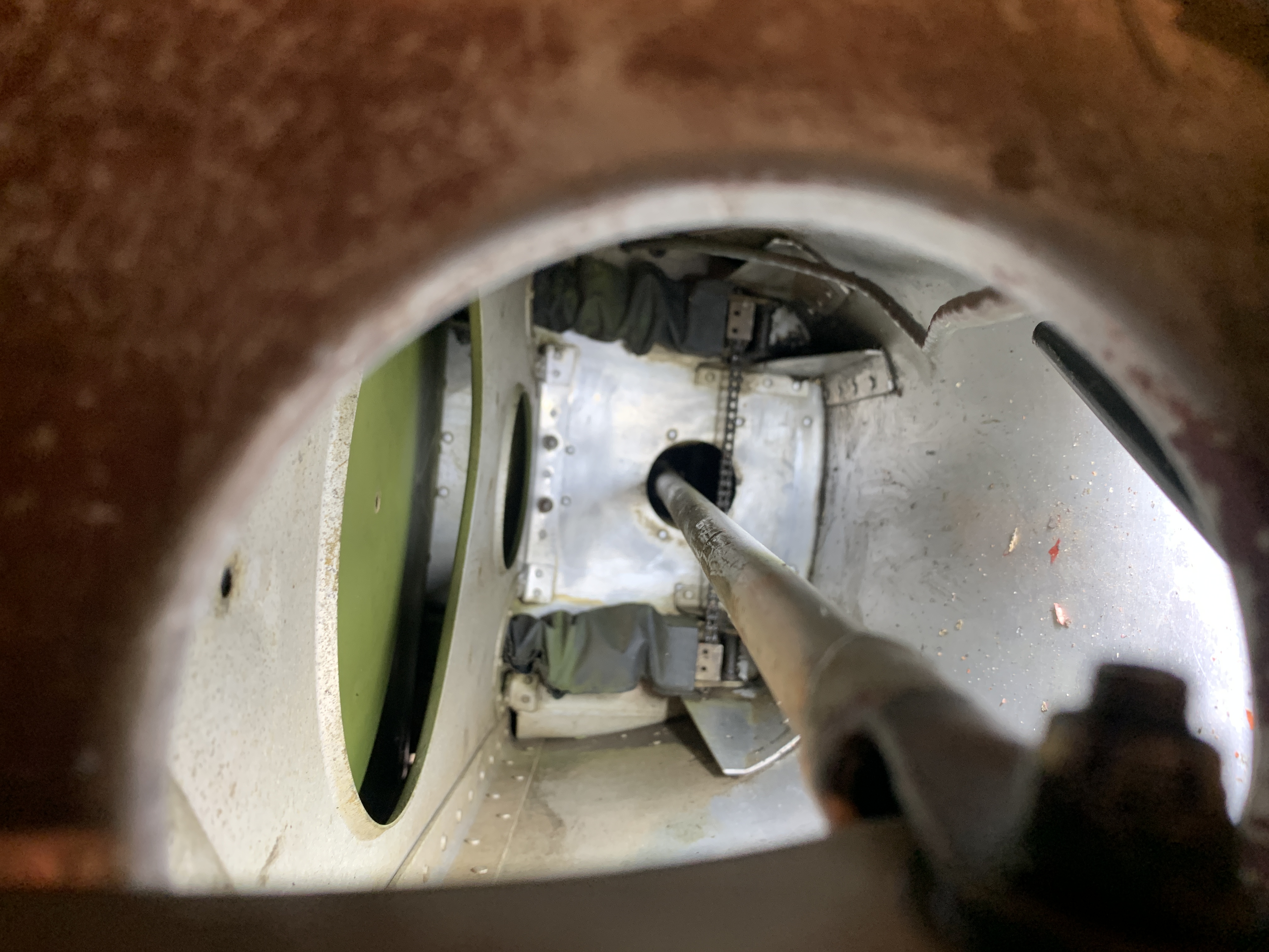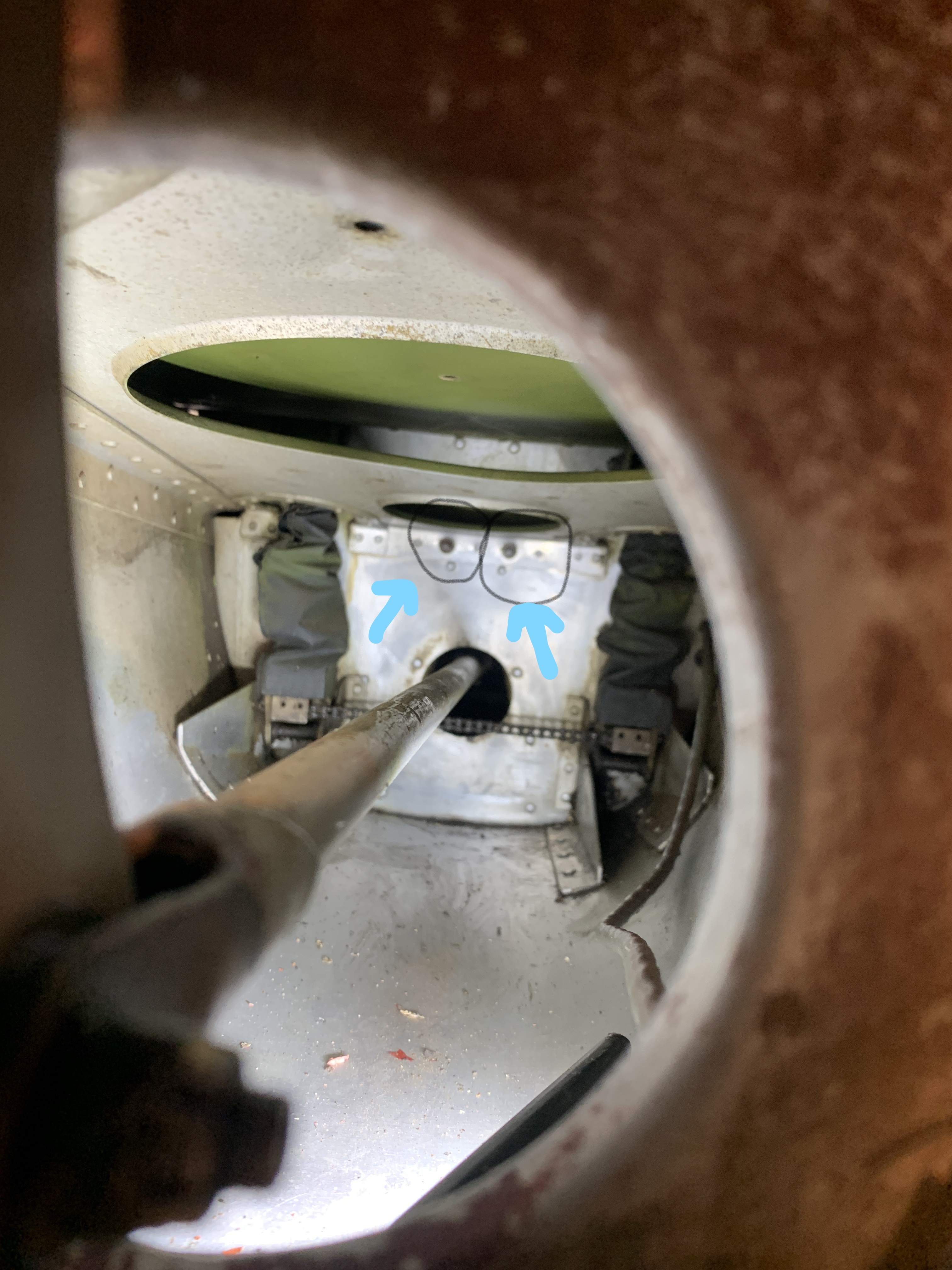 Here is a view thru the tail cone. I circled the bolts where the cracks are.