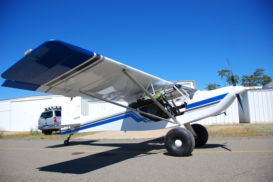 White w/Blue trim Avid Flyer....It'll be the smallest plane and the only one that sounds like a snowmobile on final