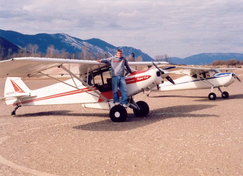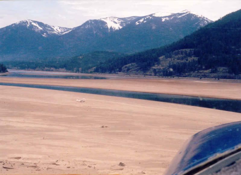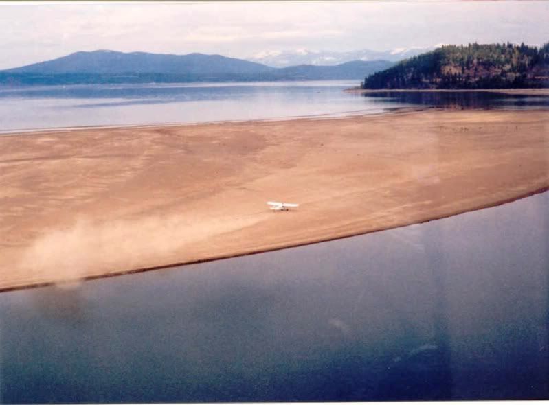 No floats, the water was low and the sand bar was exposed. Here is a couple of shots my dad took from the air in his C-120. I was flying a friends Super Cub.
