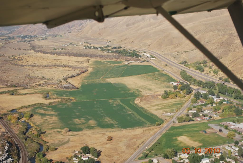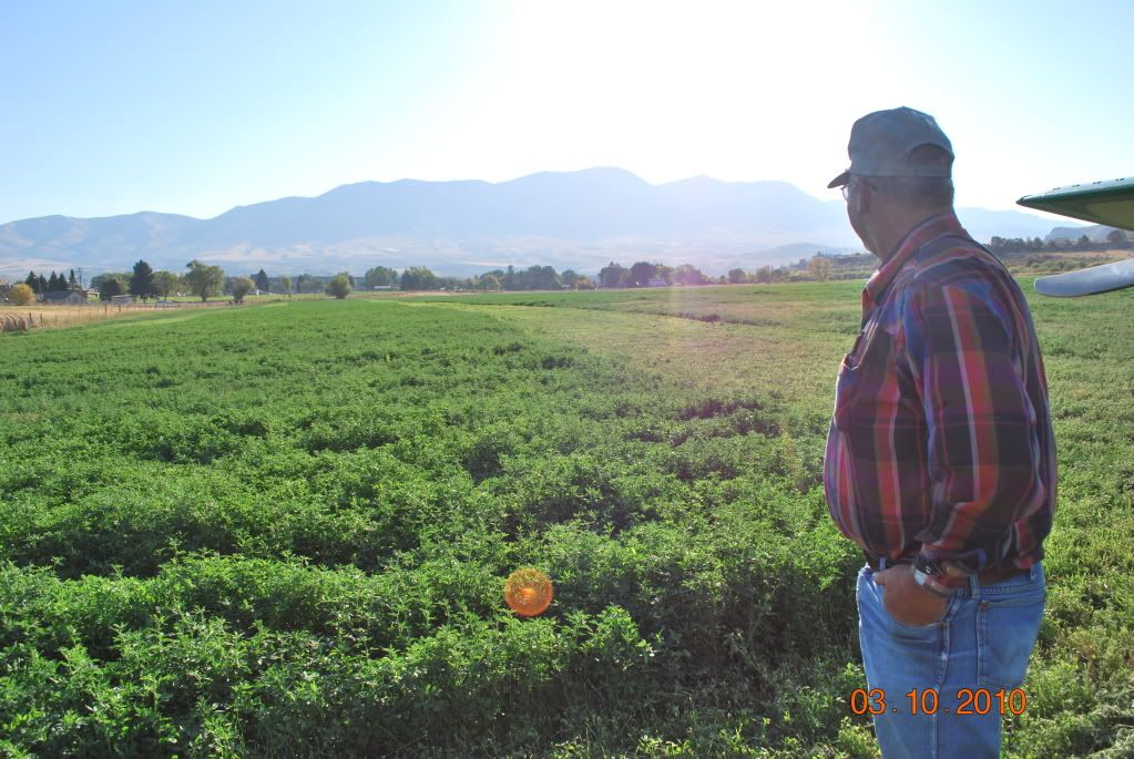 We usually do it right after the usual regular roundup, meaning guys on horse back looking in the summer grazing area on the backside of the range I live on, and as usual we found a few strays this year. A 5 minute flight and a 1 hour drive, as the road is roundabout. Taking off from my strip 1000' above the valley, I can throttle back to a fast idle and make the hay field easily, it is especially satisfying as I drive by it almost every day and can look forward to FLYING into it.