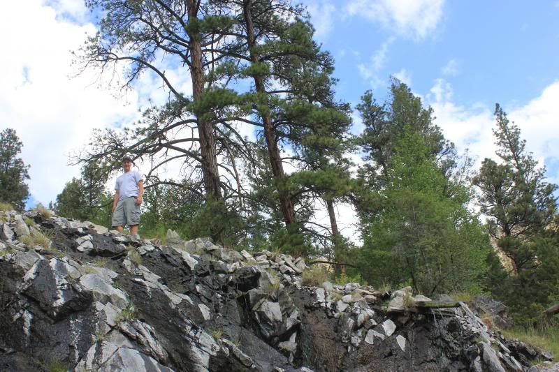 Up over the ridge to the stibnite mine.