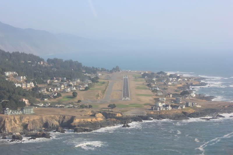 Since you are flying up the coast from SF to Oregon I would recommend stoping at Shelter Cove, CA. There is a pet friendly hotel 1/4 mile north of the airport right on the cliffs overlooking the ocean. There are a couple restaurants in town and the hotel has a courtesey van for use. Also make sure you check out Half Moon Bay while you are in the SF area, parking is on the south side of the field then walk out the gate to restaurants, shops, and hotels. Half Moon Bay Brewing Company is good, try the smoked salmon fish tacos and a pint of there IPA.