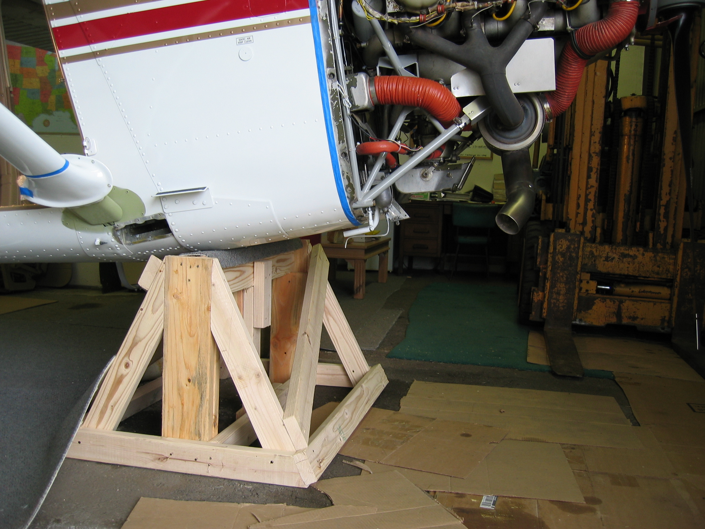 Was reading the service manual 2-2 and they describe the block of wood to stay clear of the fuselage and make contact with the gear legs.