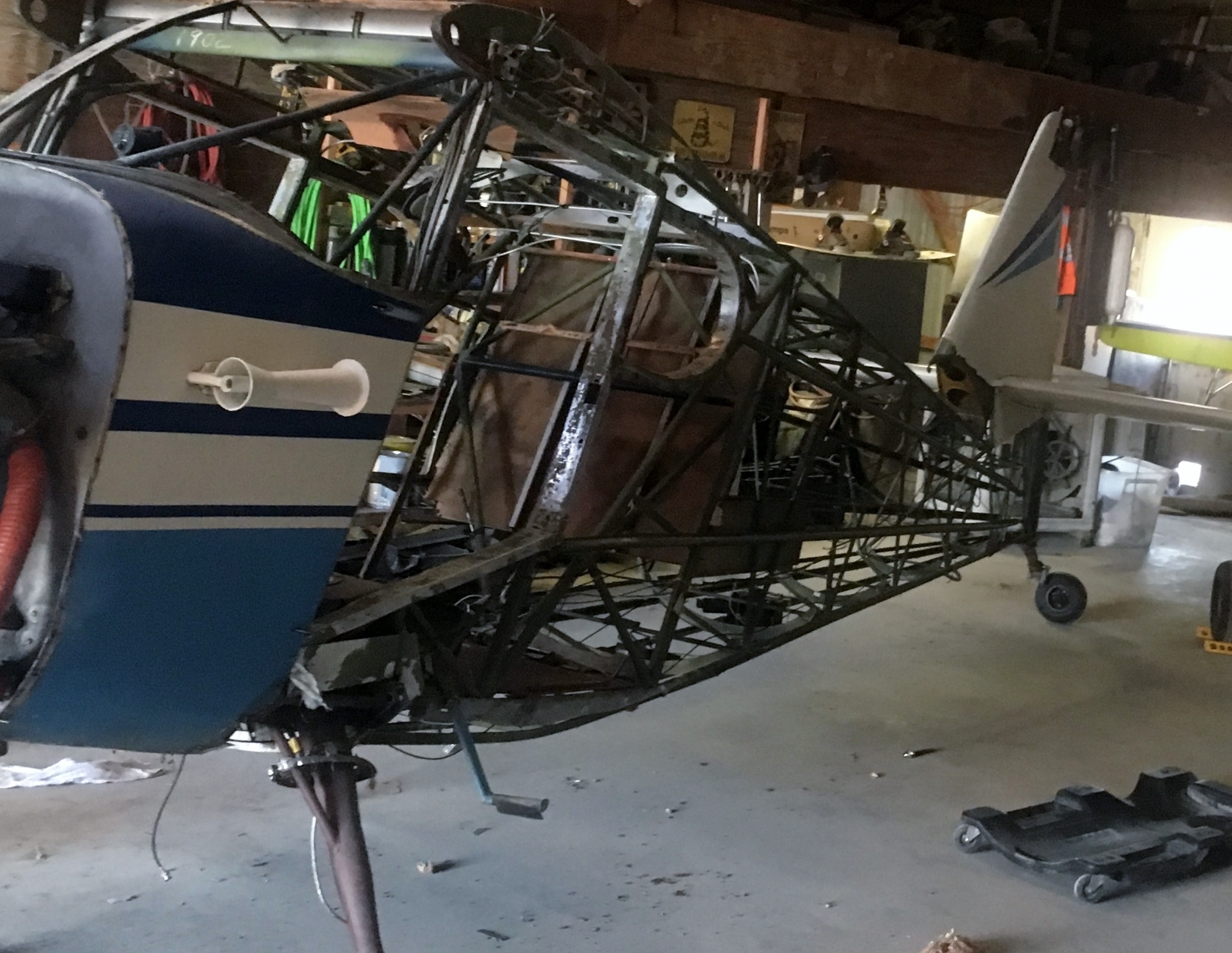 Here goes my first post on here. I've had my PP since 2012 and recently was offered the opportunity to buy a Stinson 108 from a close friend that acquired it in a will. 1538TT with 246SMOH on the Franklin 150. We changed the oil and filters, drained the fuel and put fresh 100LL in, charged the battery and she fired right up. The last annual was in 2015. An AP/AI friend of mine flew out to check it out and we found a bunch of wasp nests and rat nests in it, so we decided to pull the wings and trailer it home for a tear down and fabric job. Anyway, here are a few photos of how shes sitting in the barn today. Trailered home 6/2/18 and stripped her down 6/3.