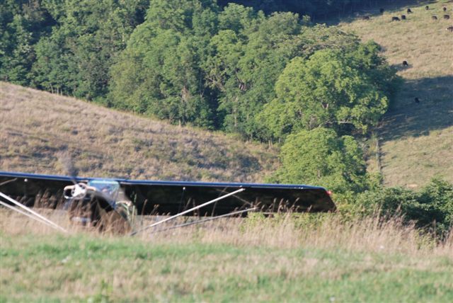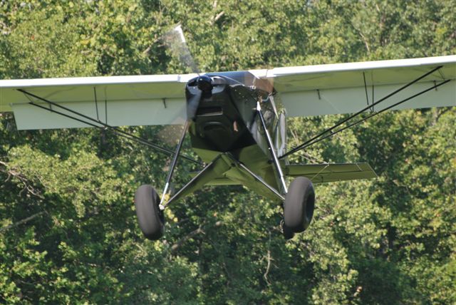 Sunday late afternoon, the Highlander owner, designer, & test pilot Troy, stopped in on his way back from Oshkosh. Quite the airplane. Long shock absorbing gear and leading edge slats that pop out at slow speed. Greg, Don, and I gave him a tour of my place. He liked our play ground and we liked his airplane. jg