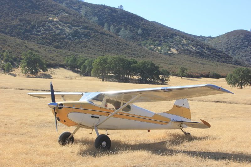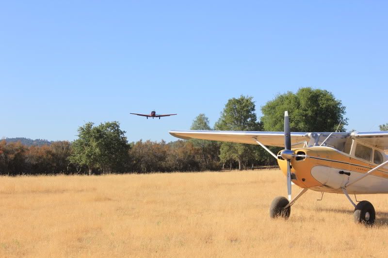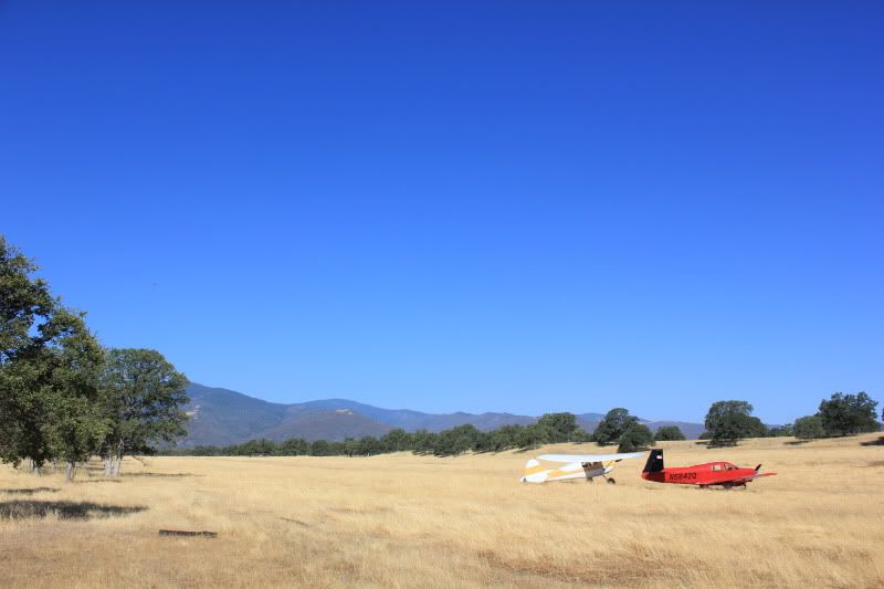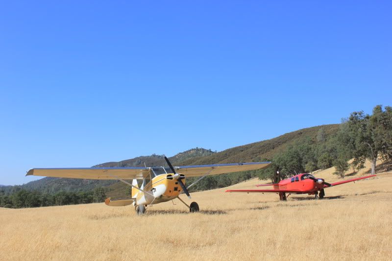 Rob, StacEY (aka Beave) and I flew around the valley and up to a new place for breakfast at a private strip(sat not today!). We found a couple of spots on the way to use the bathroom! haha on a lighter note, I had someone say later in the day comment that his friend should have my "backcountrypilot.org shirt because Mooney's don't go in the backcountry." I promtly pointed to the grass in my gear and this picture! [-X :mrgreen: