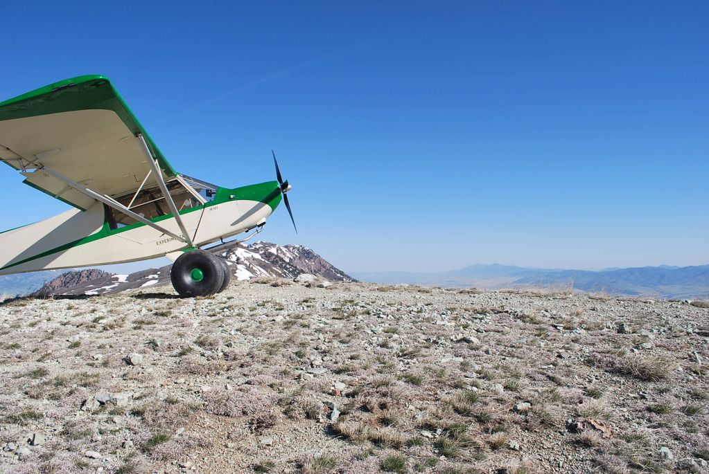 Then on up to the top, or at least as high as I could find with a place to land. 8600', good terrain anyway, a big snowbank was 50' away, and while hiking it to get a better camera angle, I realized if I lost my footing I could have slid down, picking up speed, and then gone into a rock garden. This was the most dangerous part of the flight and I got the hell off the snow right quick! Funny how things can sneak up on you when you least expect it! It would have made an interesting accident report anyway.