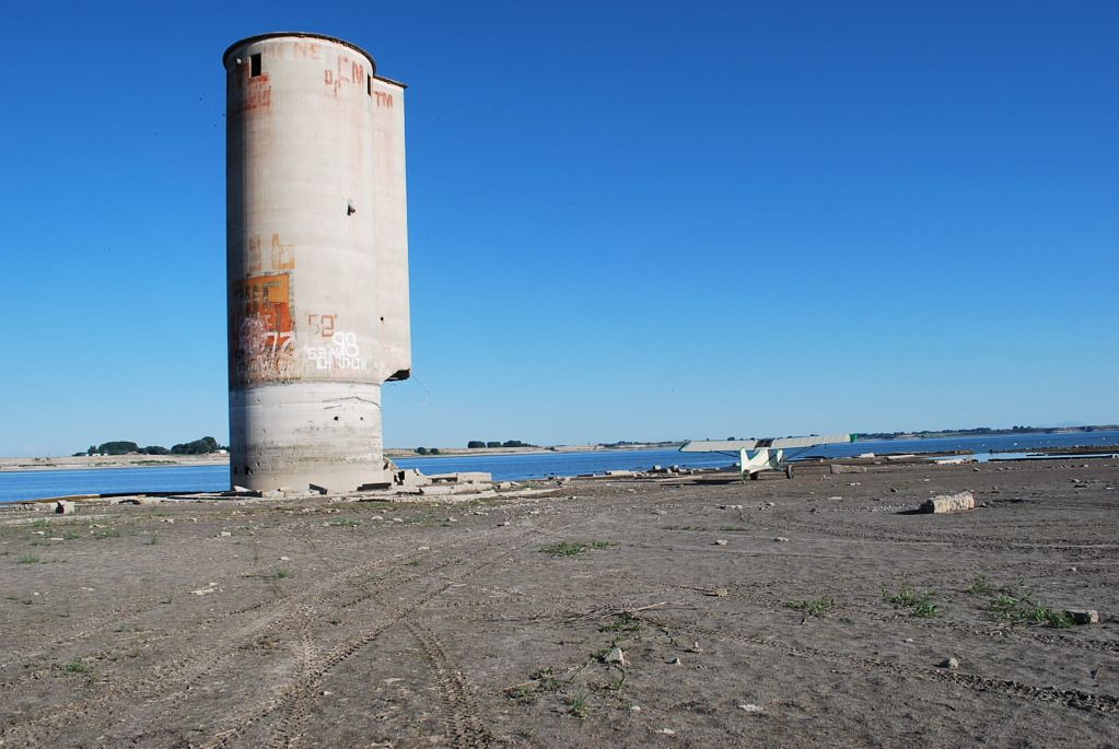Upon closer inspection, I could see someone went to a whole lot of trouble and extra work to neatly build a tower foundation inside the existing cabin! They must have dug the footings by hand, and you can see they laid up cinderblock rather then pour concrete. I'm guessing the tower people wanted to lease the site, and the rancher didn't want to lose the cabin, so a compromise was reached. Never seen anything like that before, pretty cool.