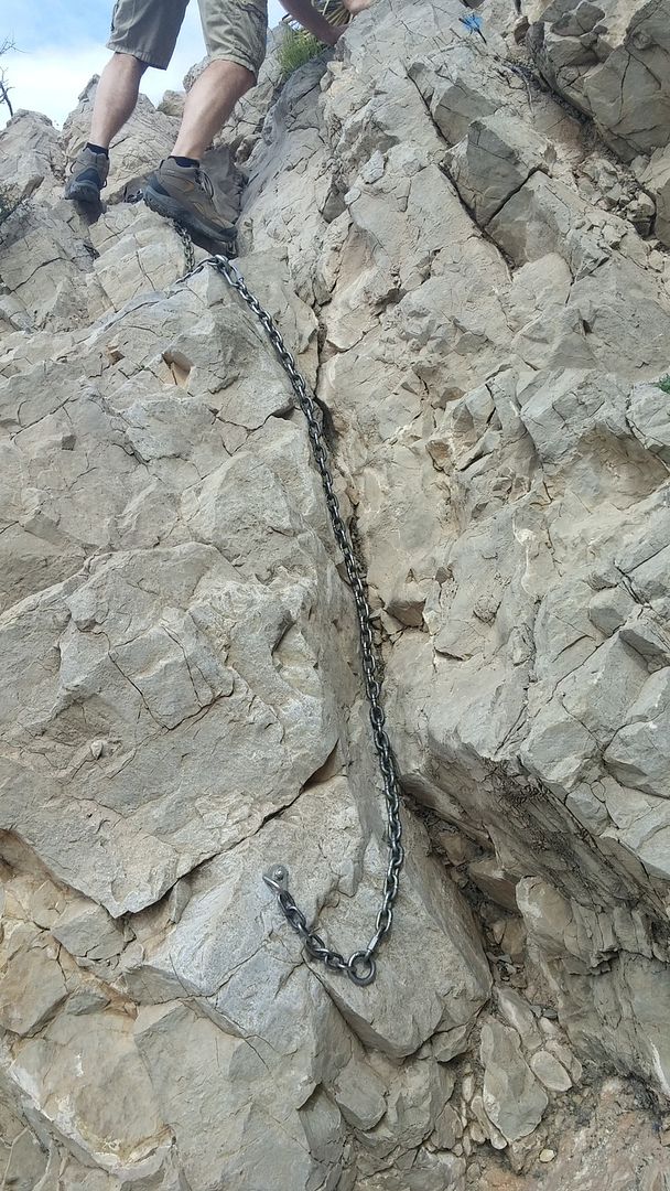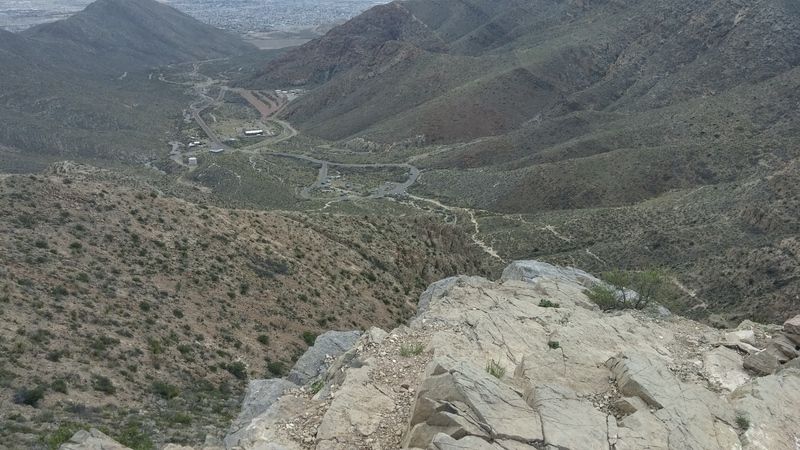 There's an initial steep section that carries you to the ridgeline. From that point you travel the ridge north and up until the first chain assisted vertical climb, which leads to a second and longer chain assisted section to "the window." The second chain section has 3 parts and is much longer than the first. After that you can follow the trail to the other side of the mountain, but we continued north and up to the peak of South Franklin Mountain. The views along the trail were great but the ones at the peak were incredible. A bird's eye view without a plane!